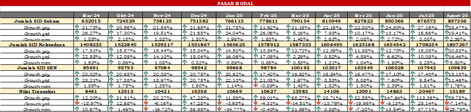 Perkembangan Kinerja Industri Jasa Keuangan - Sektor Pasar Modal, data per Agustus 2025